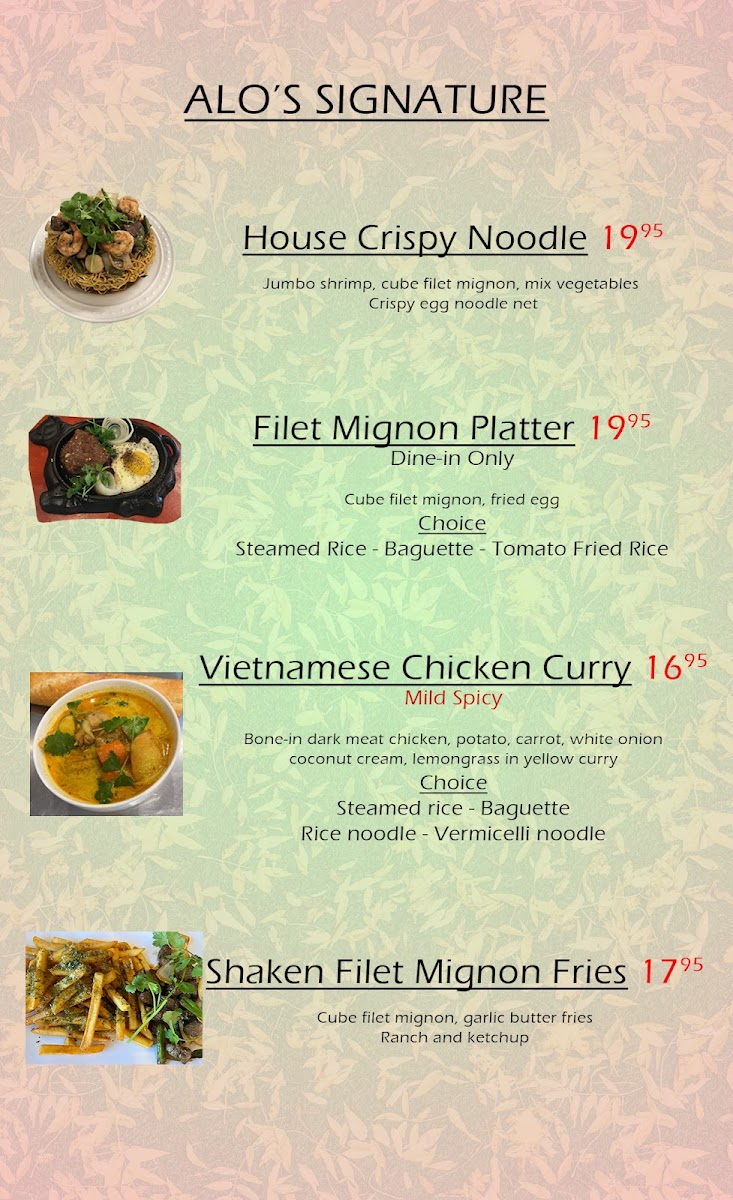Welcome to Alo Asian Kitchen, where authentic Vietnamese flavors come alive in every dish. Located at 28083 Moulton Parkway, Laguna Niguel, this vibrant eatery prides itself on using the freshest ingredients, creating a menu that promises to satisfy every craving.